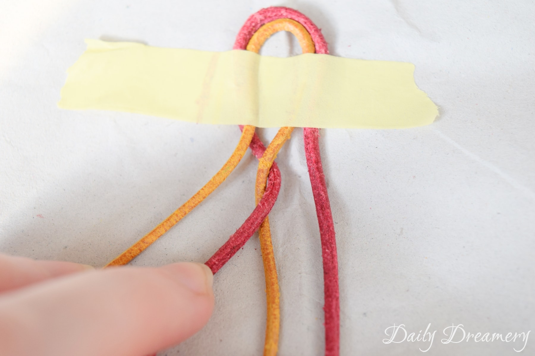 • 4 gleichlange Lederbänder (1 – 1,5 mm Durchmesser) doppelt so lang wie das Armband